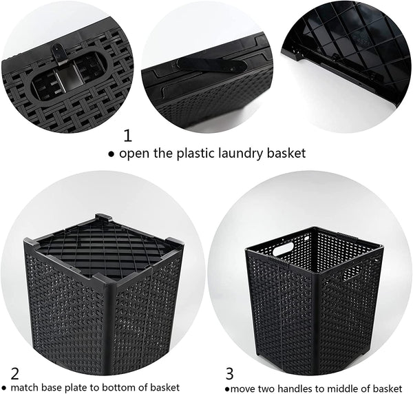 Online Europe, 2 opvouwbare Wasmand, 42L, Zwart, 33 x 33 x 44cm