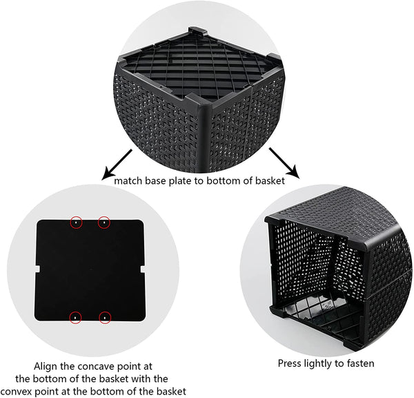 Afmetingen mand (L x B x H): bij opening is de buitenmaat 33cm x 33cm x 44cm